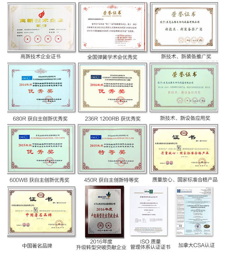 資質(zhì)證書:永騰彈簧機(jī)系列機(jī)型現(xiàn)已獲國(guó)內(nèi)外專利局多項(xiàng)實(shí)用型專利。