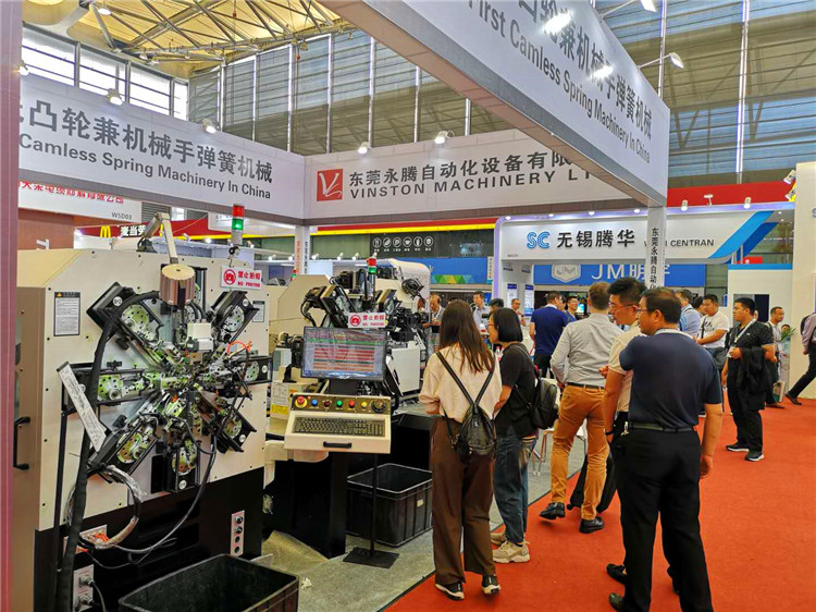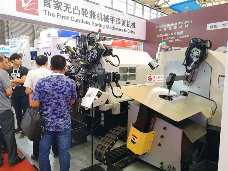 上海展會第一天,永騰展會CMM-12-450R彈簧機吸引到參展商駐足觀看。