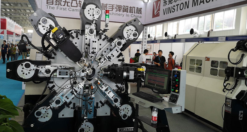 參展商與永騰展廳工作人員詳細(xì)了解彈簧機(jī)性能。